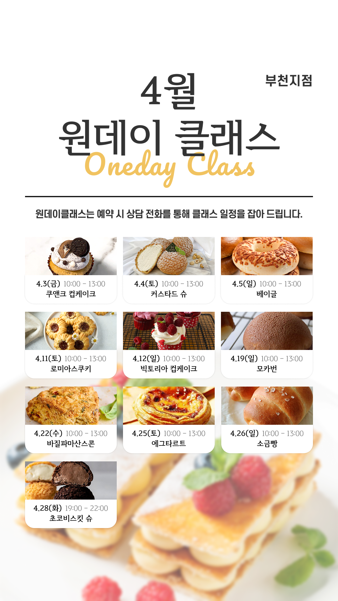 4월 지점별 원데이 클래스