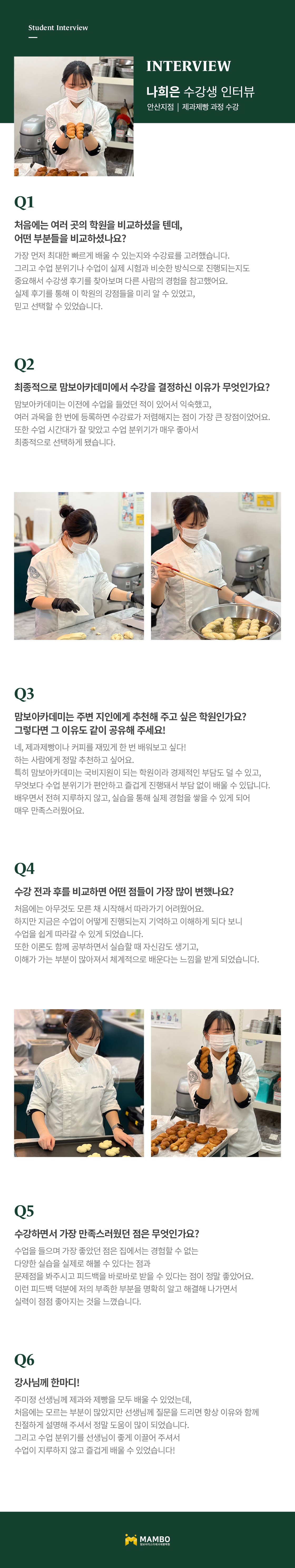 교육의 기반을 달리하여 학생의 기회를 잡아주며 직원의 기강이 태만하지 않은 맘보바리스타제과제빵학원