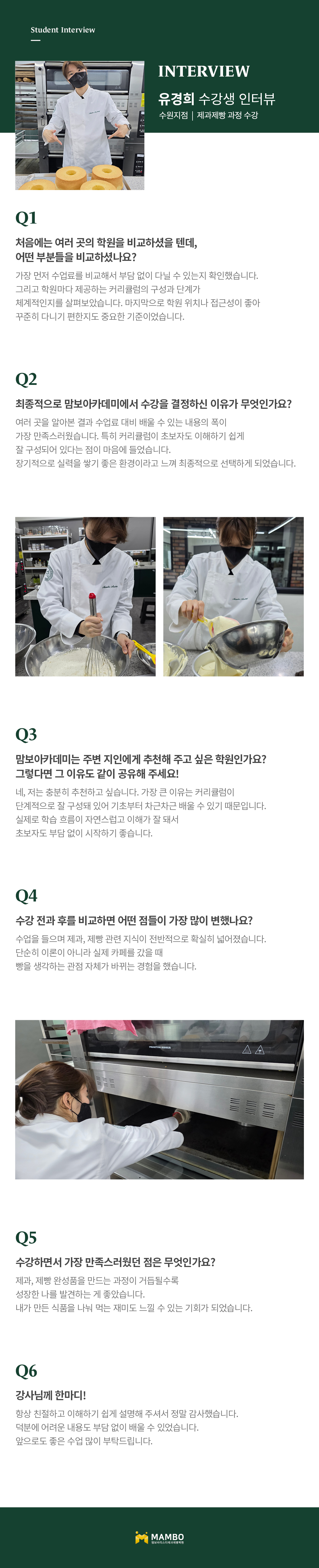 교육의 기반을 달리하여 학생의 기회를 잡아주며 직원의 기강이 태만하지 않은 맘보바리스타제과제빵학원